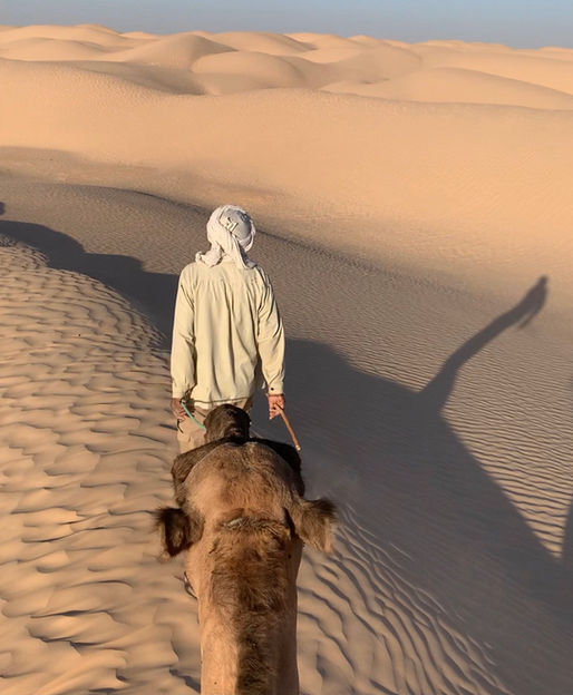 Nach dem Frühstück fahren wir mit zwei Jeeps zum ersten Wüstencamp. Hier, inmitten einer atemberaubenden Wüstenlandschaft erwarten uns bereits unsere Wüstenführer mit Kamelen und der passenden Ausrüstung für unser erstes gemeinsames Abenteuer auf uns.