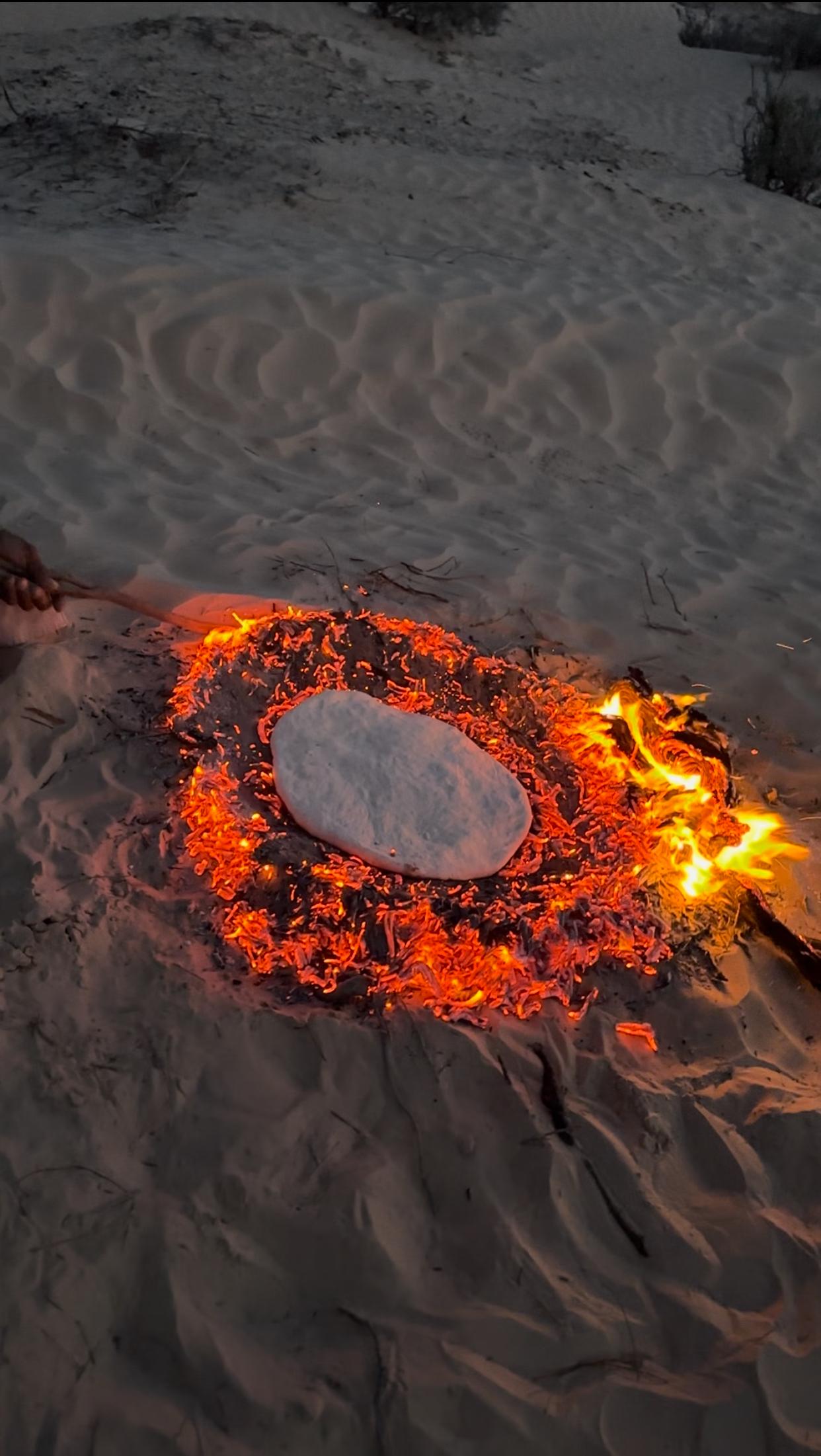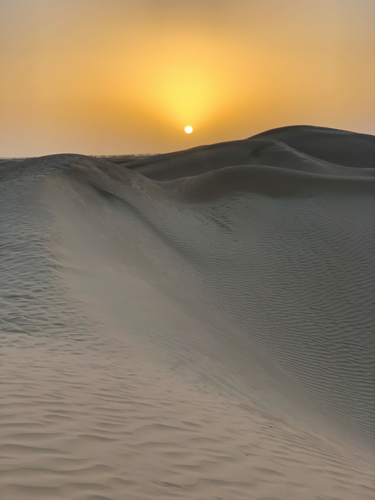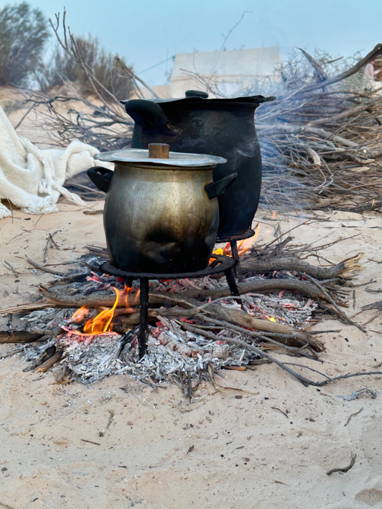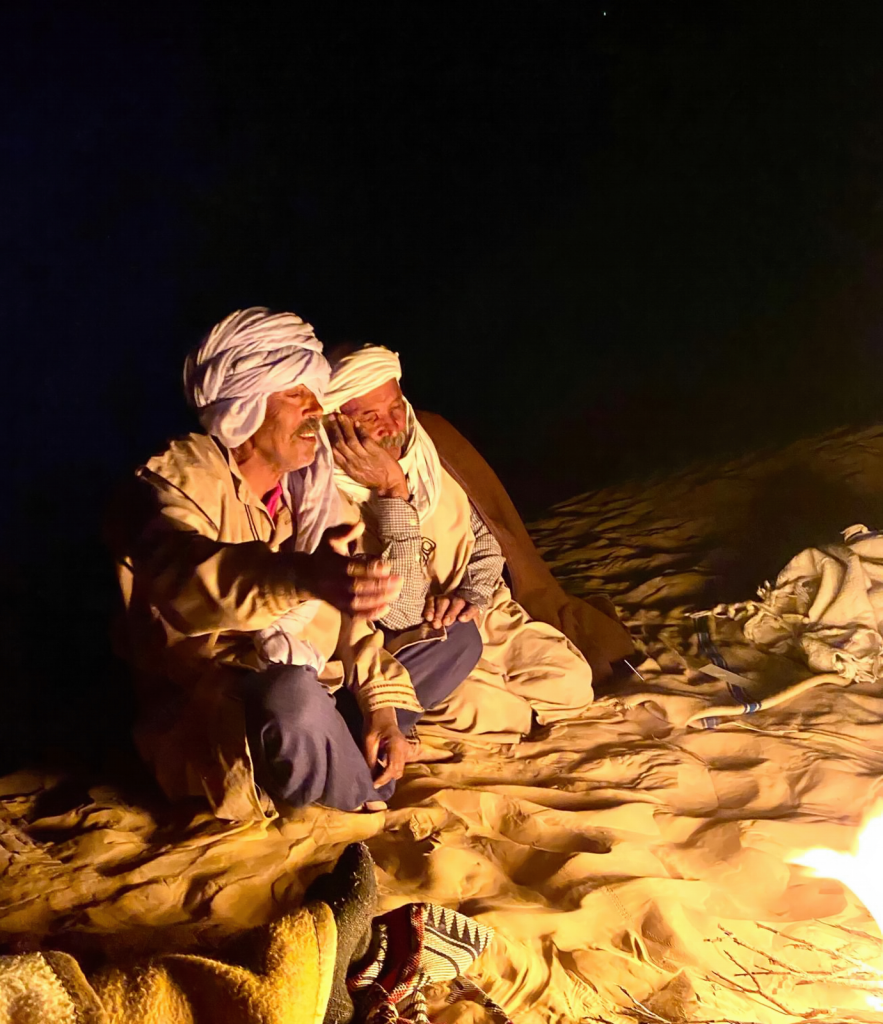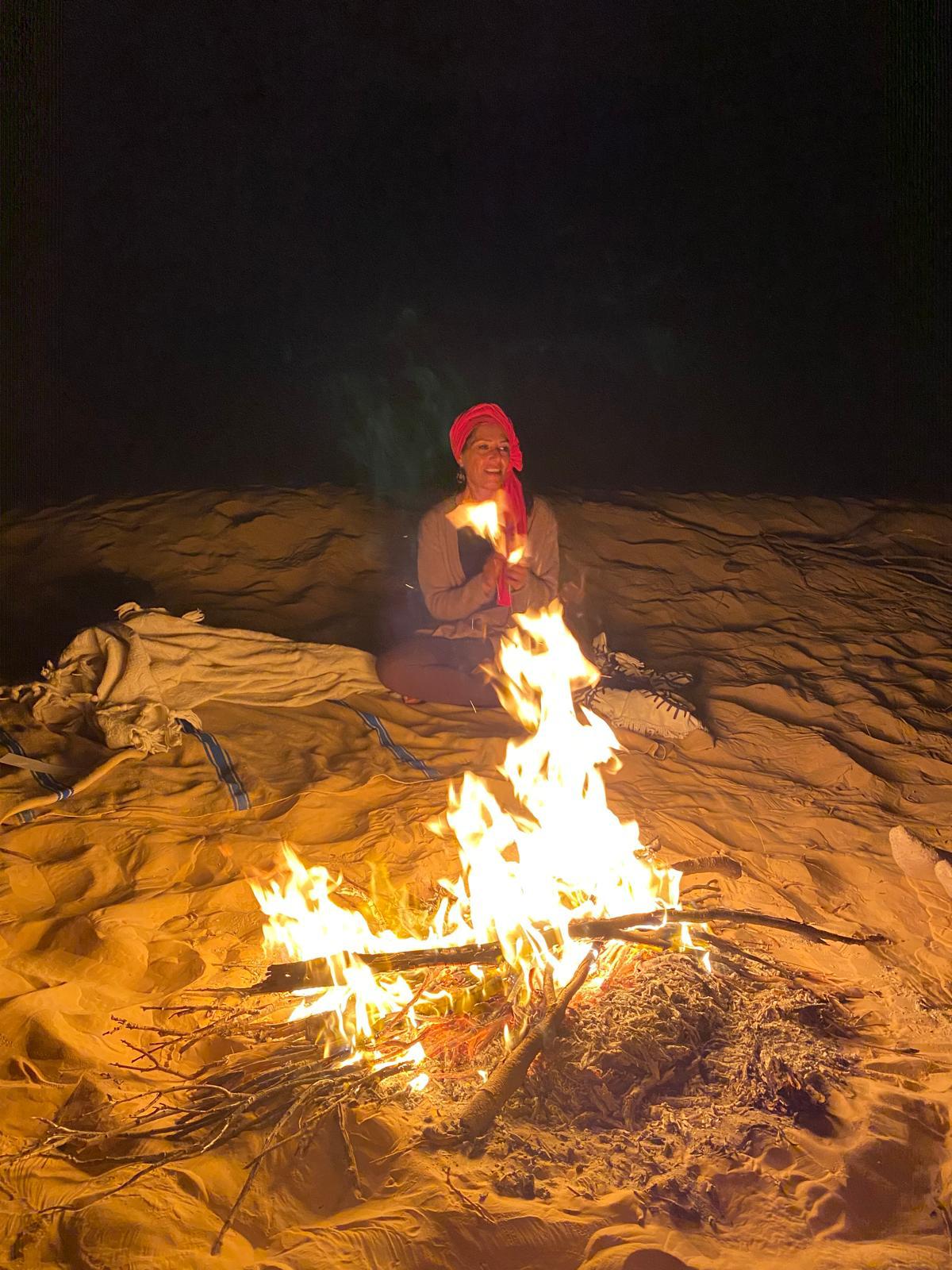Jeden Tag lassen wir mit Genuss ausklingen: wenn die Sonne sich abends am Horizont langsam zur Ruhe begibt, begleiten wir sie in Stille. Nach dem Abendessen lassen wir dem Tag Revue passieren und tauschen am Lagerfeuer das Erlebte und Gefühlte aus, begleitet von einer Teezeremonie, sanfter traditioneller Trommel- und Pfeifenmusik oder vom Gesang des Sandes und des brennenden Holzes. So wächst auch unser Zusammenhalt jeden Tag ein wenig mehr – sowie unsere Reise zur eigenen Essenz immer tiefer geht.