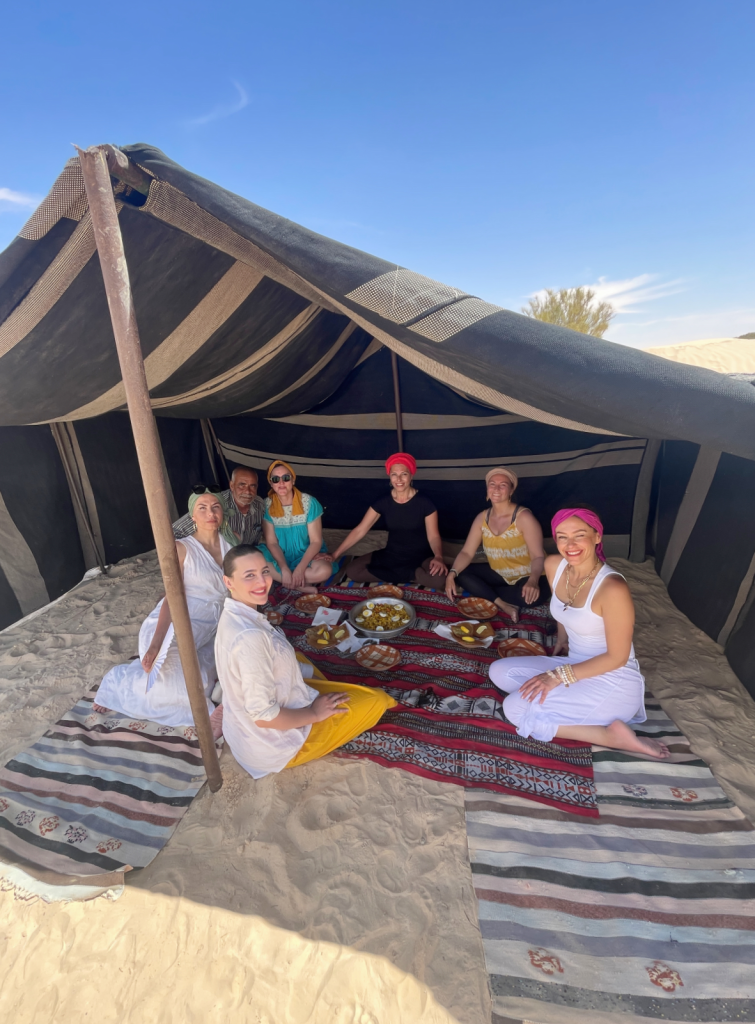 Von da an, sind wir willkommene Gäste der Sahara und geben uns ihrer Weite und Stille hin. Wir reisen nicht nur in die Tiefen der Wüste, sondern auch in unser Innerstes; folgen den Spuren der Urweiblichkeit- Gemeinsam genießen wir den Sonnenaufgang mit seiner atemberaubenden Energie in Stille und entdecken während der Meditationen, sanften Yogasequenzen, Ritualen und energetischen Körper-Übungen immer mehr uns selbst.
